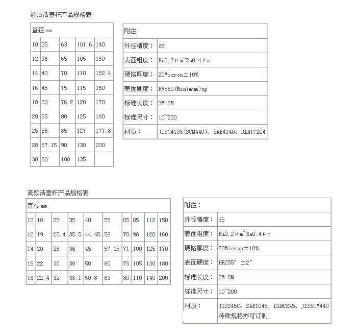特種加工超光滑活塞桿的質量特性:圓度公差符合GB1184  8級;